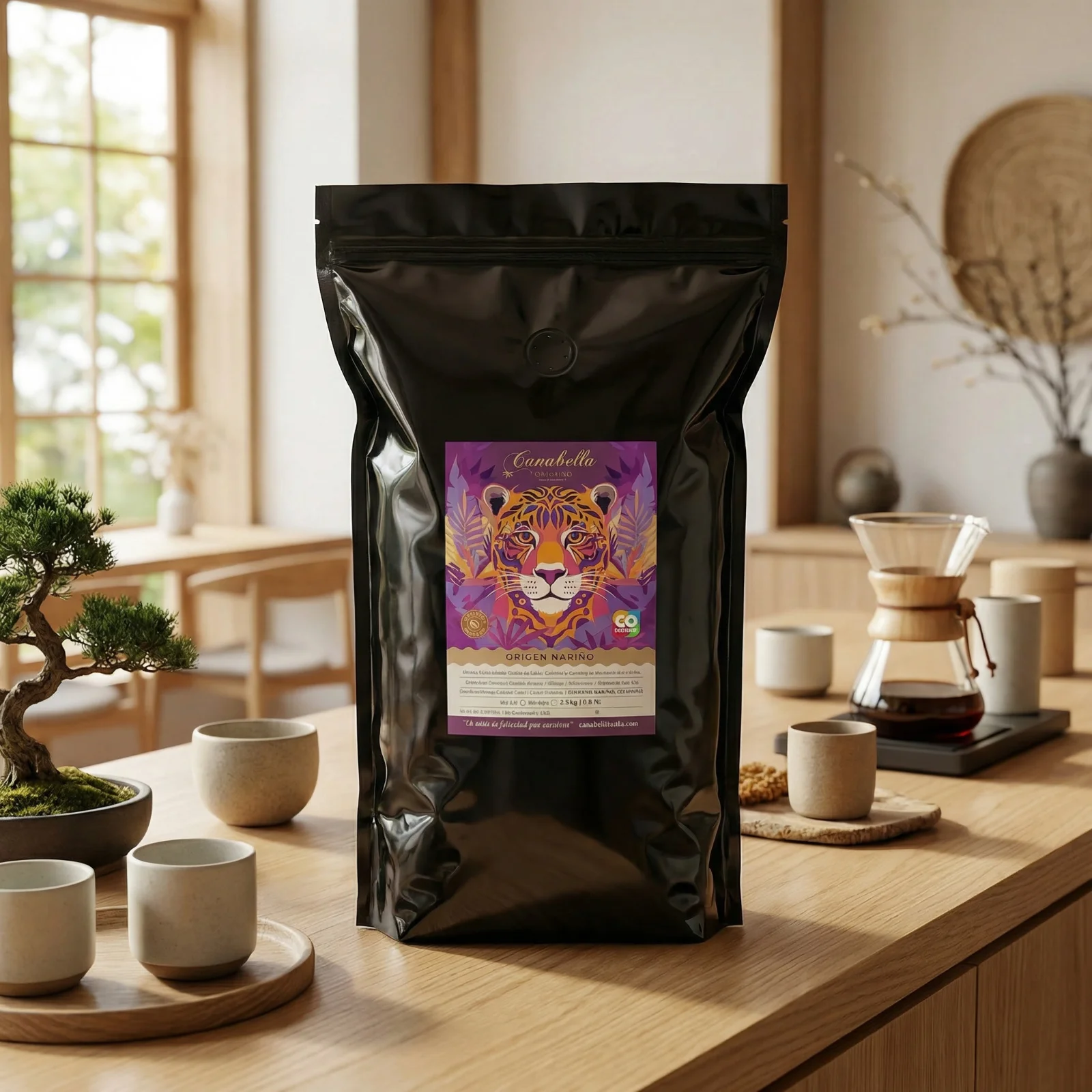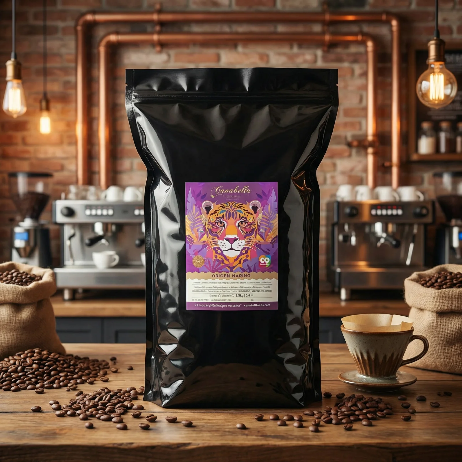 5 kg de Canabella Café Especial con Cannabis origen de Buesaco, Nariño, Colombia, tostado medio en grano entero
